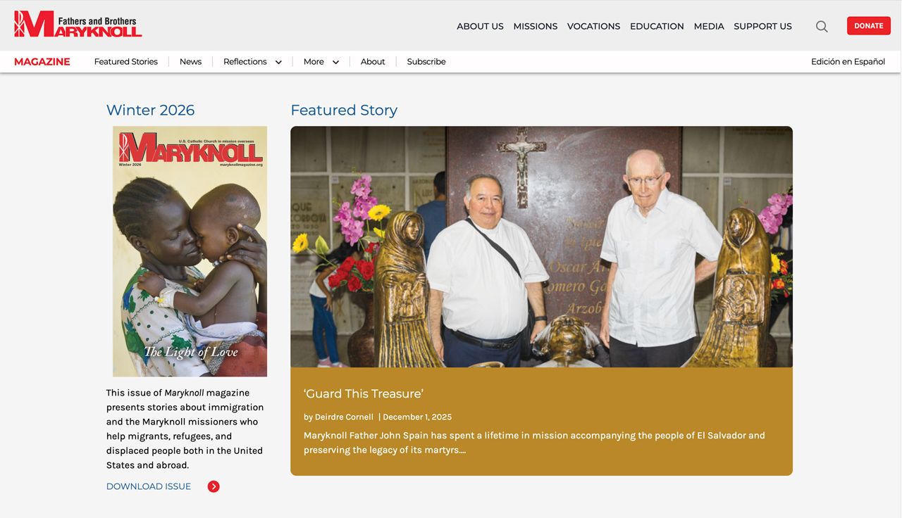 The website for Maryknoll Magazine, a century old publication highlighting missionary news and stories from the Maryknoll Fathers and Brothers, Sisters, and the Office of Global Concerns.